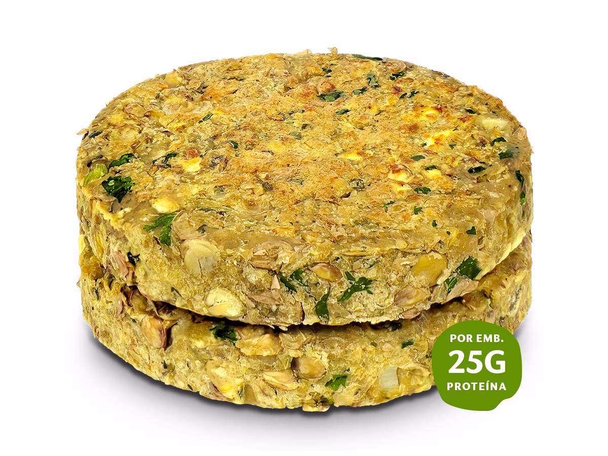 Transforme a sua alimentação com o nosso delicioso Burger de Lentilhas, feito com ingredientes frescos e preferencialmente locais. Rico em proteínas e fibras, este burger é a escolha perfeita para quem procura uma refeição nutritiva e saborosa. Entre alguns dos seus benefícios para a saúde, podemos destacar: o alto teor de proteína vegetal; ideal para a construção e reparação muscular; rico em fibras, contribuindo para uma digestão saudável e prolongada sensação de saciedade; baixo teor de gordura; perfeito para manter uma dieta equilibrada. Opte por uma alimentação saudável e nutritiva com o nosso Burger de Lentilhas! Dentro da nossa oferta de Burgers, sugerimos também o nosso Burger de Grão e Caril e o Burger de Beterraba e Feijão Branco. Da horta para a sua mesa!